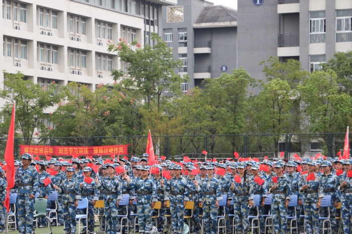 会上,军事训练成果展示环节精彩纷呈。包括“匕首操”、“刺杀操”、“擒敌拳”、“军体拳”、“反恐维稳”、“警棍盾牌”等不同演练类型的方阵展示,各个方阵的出色表现,展现了新生们经过军事训练后焕然一新的精神风貌。