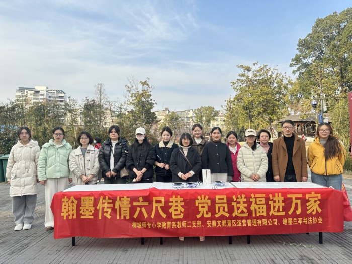 为弘扬中华优秀传统文化,推动主题党日与志愿服务深度融合,桐城师专小学教育系教师第二党支部、翰墨兰亭书法协会联合安徽文都景区运营管理有限公司,在六尺巷景区开展“迎新春、送春联”主题党日活动。本次活动借助六尺巷浓厚的文化氛围与历史底蕴,在景区内为游客与附近居民书写春联、传递祝福。
