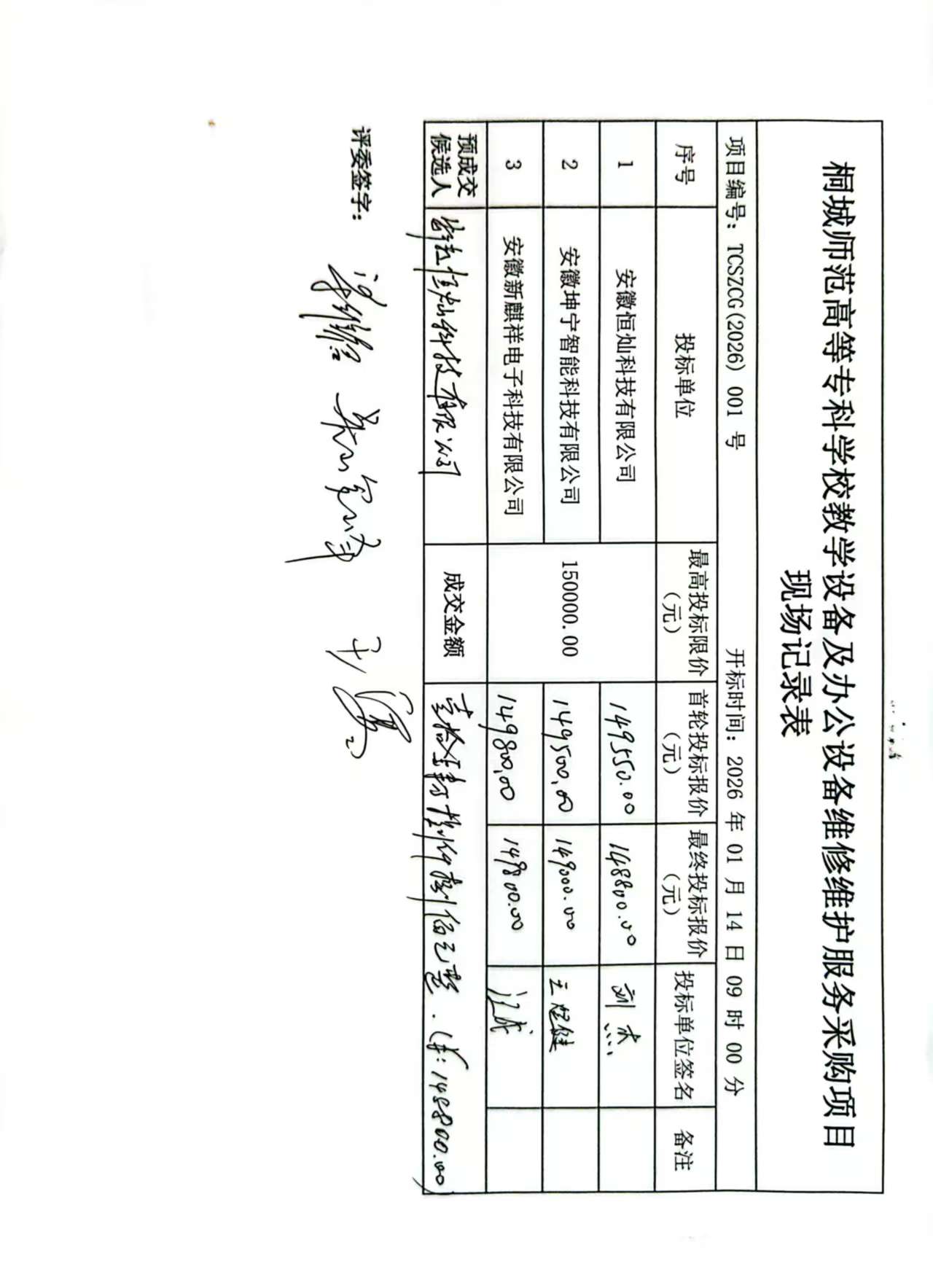 一、项目编号:TCSZCG(2026) 001 号