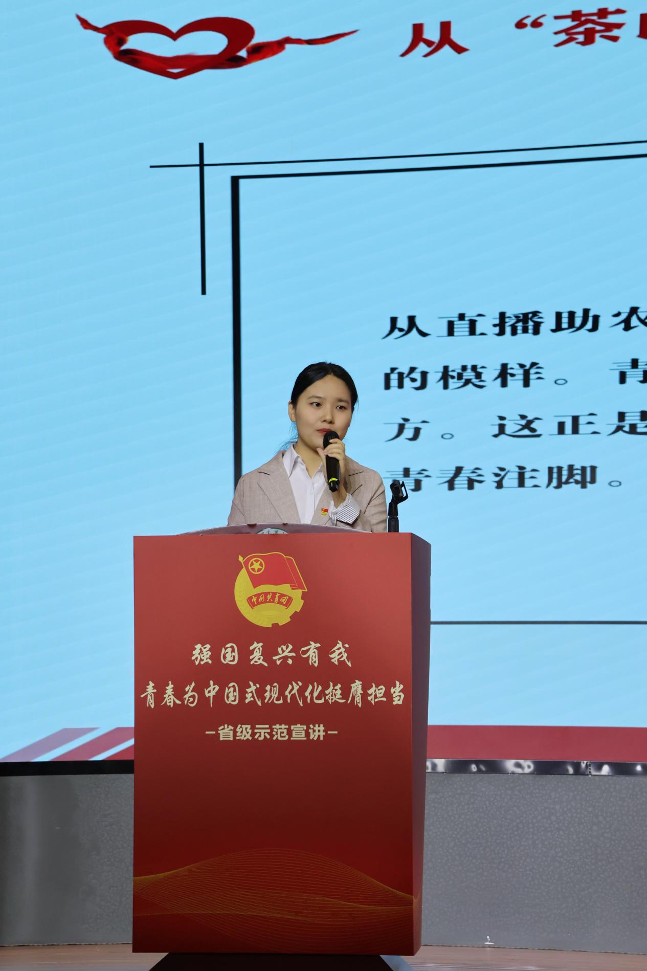 为深入学习贯彻习近平新时代中国特色社会主义思想,激励广大青年在中国式现代化建设中挺膺担当、贡献青春力量,10月27日上午9:00,由团安徽省委、省委讲师团主办,团安庆市委、安庆医药高等专科学校承办的“强国复兴有我,青春为中国式现代化挺膺担当”省级示范宣讲活动,在安庆医药高等专科学校多功能报告厅隆重举行。来自各领域的青年代表齐聚一堂,共话青春使命,我校教师吴耀虹作为安庆市青年讲师团成员,受邀参加活动并作专题宣讲。