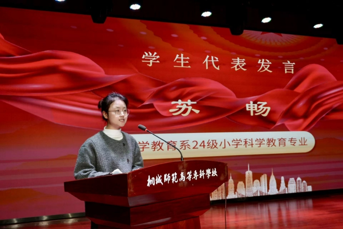 小学教育系学生代表苏畅发言表示,新时代青年学生应主动实现从“要我安全”向“我要安全”的思想转变,完成从“被动遵守”到“主动守护”的行为升华。