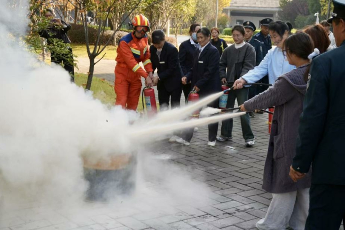 仪式结束后,市消防大队教练员现场讲解预防火灾知识并演示如何正确使用灭火器。