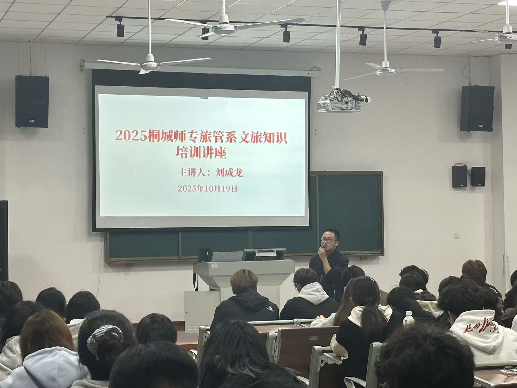 2025年10月19日,由旅游与公共管理系主办的桐城文旅知识讲解培训讲座在以智楼报告厅举行。本次讲座由旅游与公共管理系刘成龙老师担任主讲,围绕桐城的历史文化、名胜逸事及研学知识展开系统讲解,旨在提升旅游管理专业学生的专业素养与服务能力,进一步推动桐城文旅融合发展。