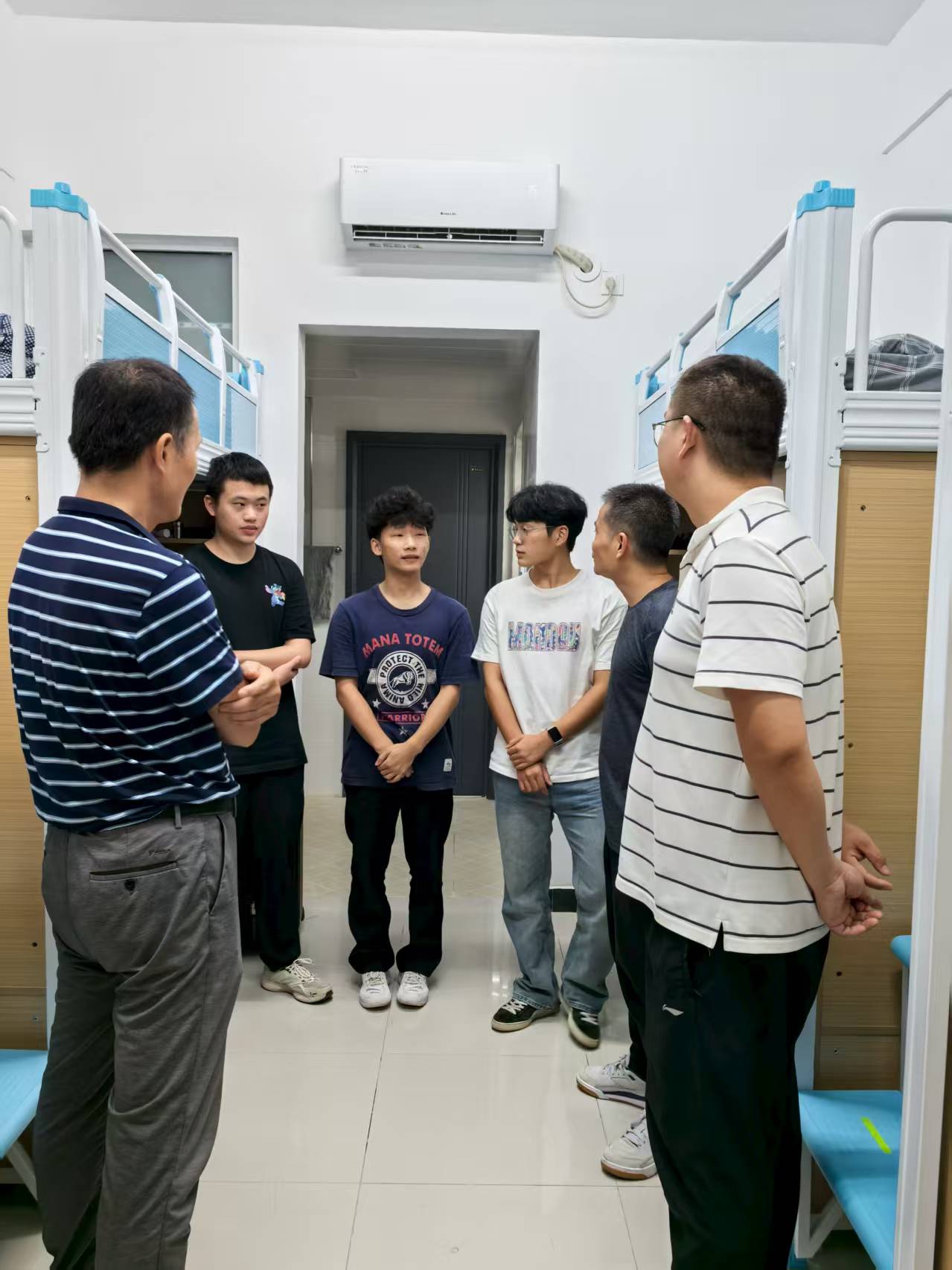 走访过程中,系领导与新生们面对面交流,详细询问住宿环境适应情况,从床铺是否舒适、水电使用是否方便,到食堂饮食是否习惯,事无巨细地关心着新生的生活细节。