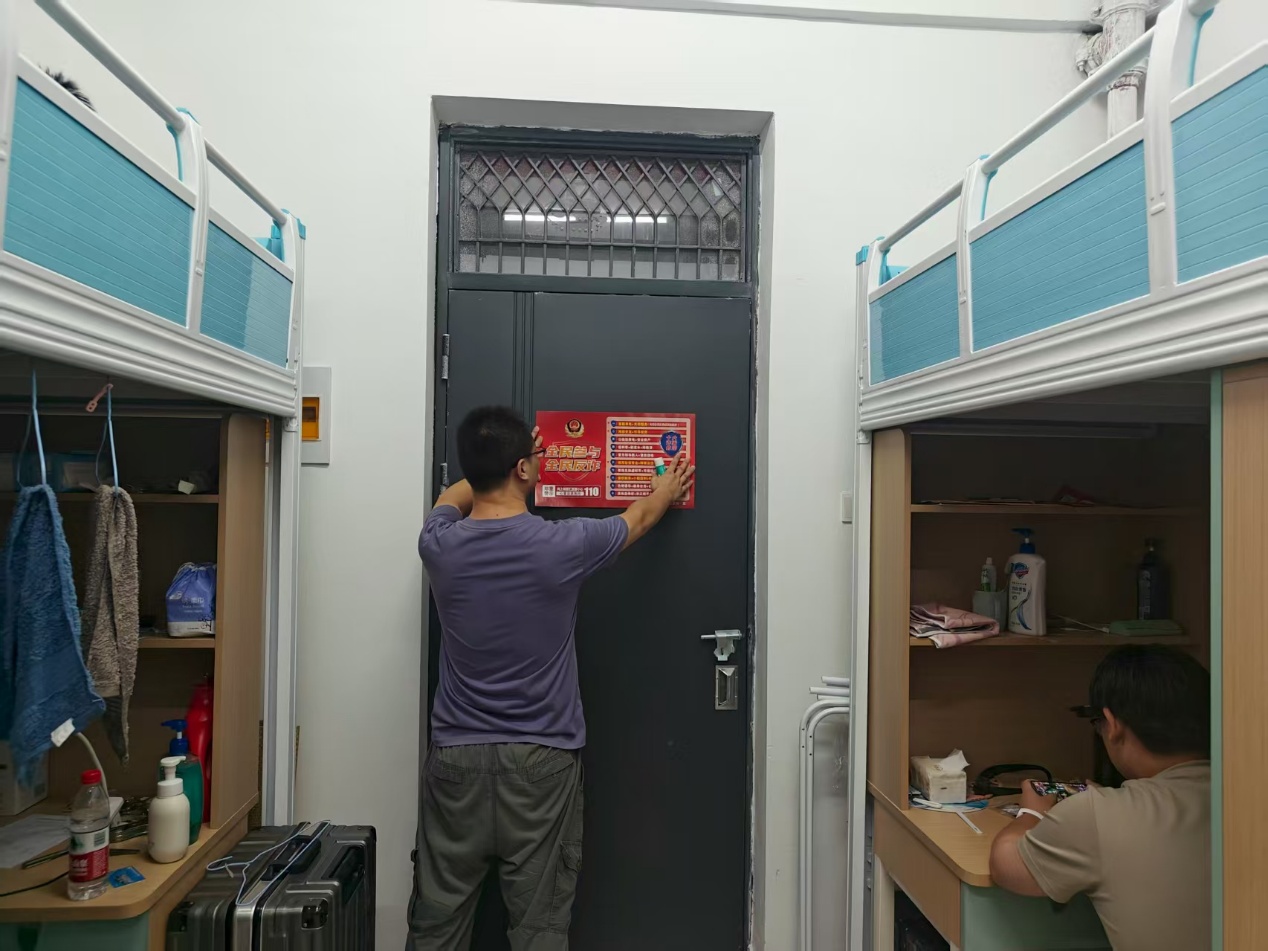 会后商电系辅导员深入2025级新生宿舍粘贴反诈小提示,时刻提醒广大学生提高自身安全意识,注意防范落入电信网络诈骗陷阱中。