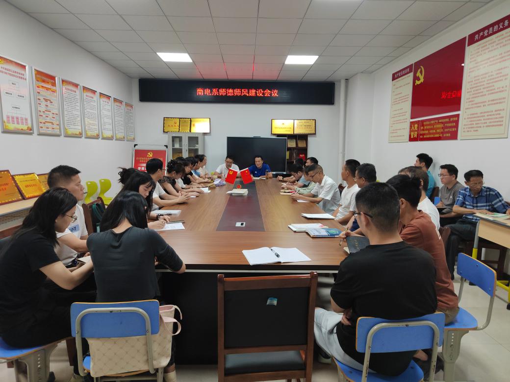在专题学习环节,商电系党总支专职组织员齐美义带领大家学习了《新时代高校教师职业行为十项准则》《商电系师德师风失范及处理办法》等文件,结合系部实际情况,对教师在日常教学、师生交往等方面的行为规范提出了明确指导。