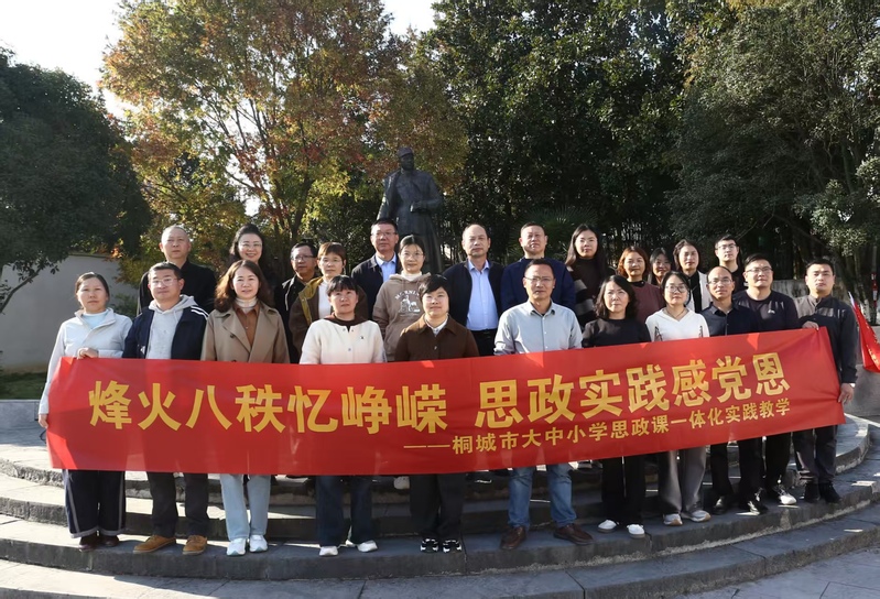 为深入贯彻落实立德树人根本任务,推动大中小学思政课一体化建设走深走实,11月15日,马克思主义学院联合桐城市教育局,组织全市大中小学思政课教师代表以及桐城师专的学生代表赴泾县红色教育基地,开展 “烽火八秩忆峥嵘,思政实践感党恩”主题实践教学活动。这场跨越学段的红色实践教学,将思政教育“小课堂”与革命历史“大课堂”深度融合,让红色基因在沉浸式体验中代代相传。