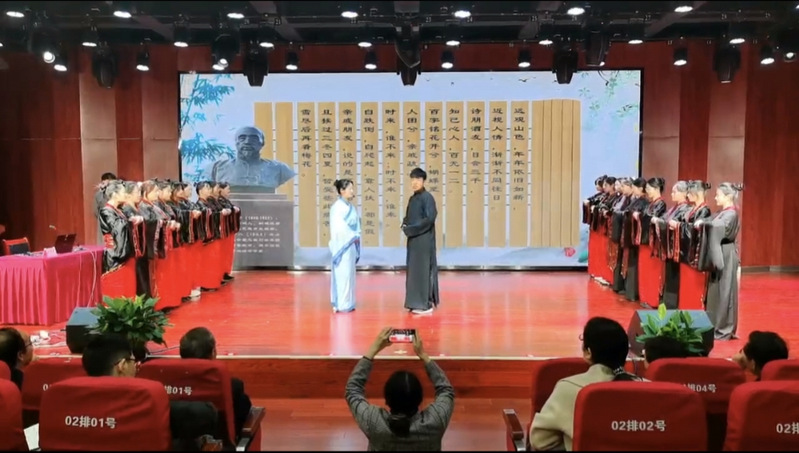 为深入贯彻习近平文化思想,推动中华优秀传统文化创造性转化、创新性发展,11月8日下午2:00,“习近平文化思想的桐城实践”安徽省思政课程研讨会在久久久久久久人妻无码中文字幕爆音乐厅隆重举行。受主办方邀请,桐城文化爱好者协会精心改编桐城派后期大师吴汝纶先生名作《百字铭》,以新颖的形式、优美的吟诵、曲折的情节精彩亮相,为研讨会注入青春活力,赢得现场嘉宾的一致好评。
