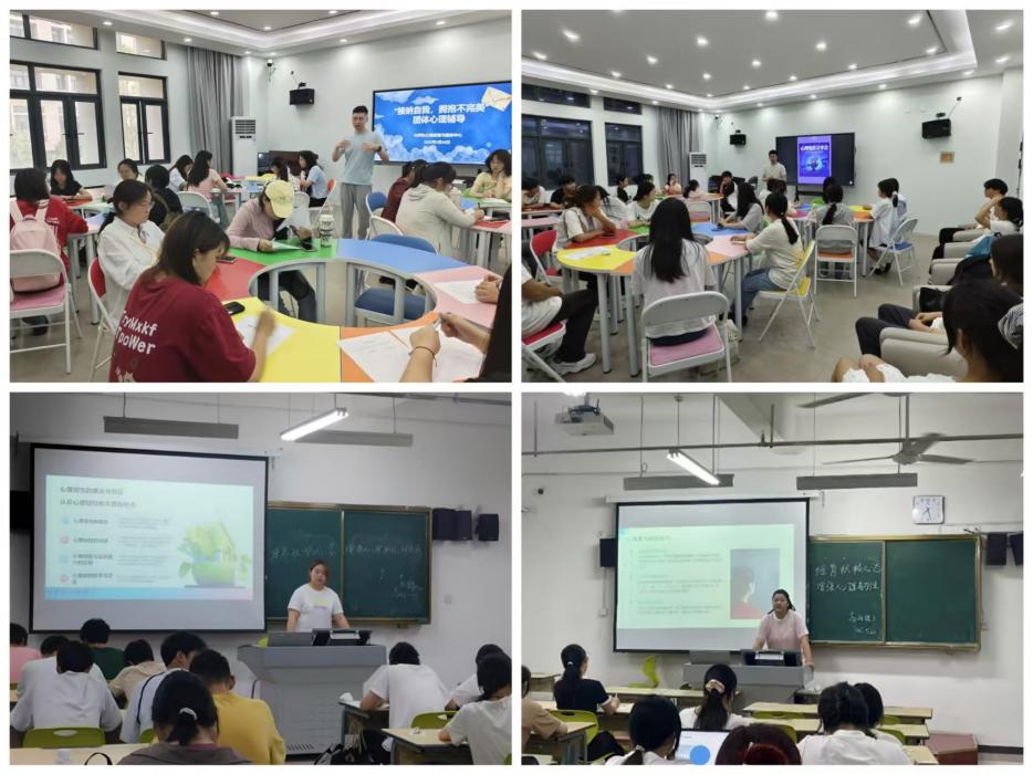 本次心理健康月期间,心理健康中心还举办了“接纳自我,拥抱不完美”团体心理辅导、心理电影分享会等活动,各系围绕“培育积极心态 增强心理韧性”的主题召开了心理健康班会。