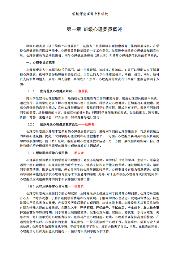近年来,桐城师专持续加强心理育人体系建设,构建“校-系-班-舍”四级网络工作体系。此次新生心理委员培训,为切实发挥班级心理委员在工作体系中的“前哨站”作用提供了有力支持,是落实“关口前移、重心下移”心理工作方针的重要举措,体现了学校对学生心理健康的高度关注与科学应对。未来,学校将持续优化心理委员培养机制,推动朋辈支持力量专业化发展,为学生健康成长织密防护网络。