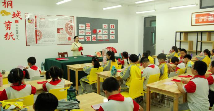 二是开展“桐城剪纸”非遗体验活动。“桐城剪纸”非遗传承人薛海霞老师介绍桐城剪纸的历史并现场示范剪纸的技法步骤,小朋友亲自动手进行剪纸制作。小朋友们在学习剪纸技法的同时也对这门民间艺术有了更深刻地认识。