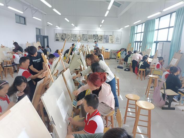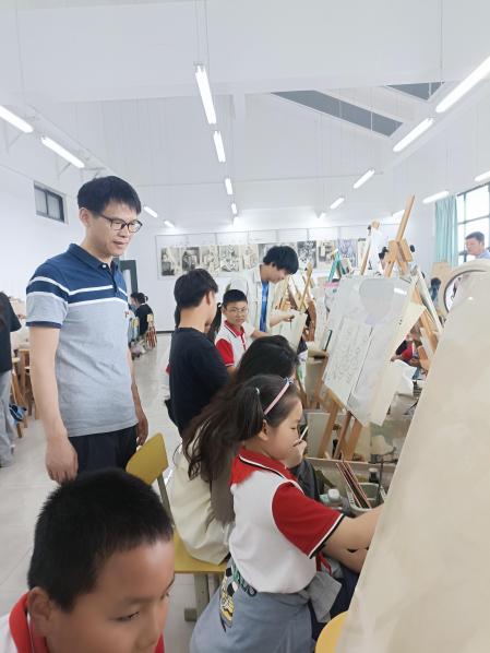 三是开展趣味“素描”体验活动。素描体验活动在美术南楼五楼的素描教室进行,我系的周结春老师向小朋友们简要介绍素描的基本技巧和工具使用方法,通过简单的几何图形和实物示例,教授孩子们如何捕捉物体的轮廓和基本形态,在老师的指导下,孩子们开始动手实践体验。