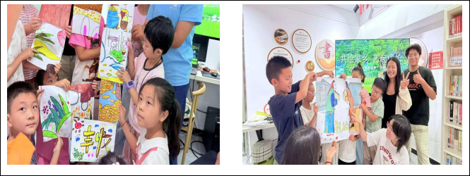 活动最精彩的环节是“接力共创”实践。实践团成员预先在一组分散的画纸上共同绘制出一幅完整线稿的各个部分,每位小朋友随机领取其中一张,负责完成局部的勾线与涂色。四十分钟里,孩子们专注投入,互相讨论颜色搭配;队员们穿梭指导,鼓励协作。最终,当所有画纸按正确顺序拼合,一幅色彩斑斓、充满童趣的集体创作跃然眼前,现场响起一片欢呼。