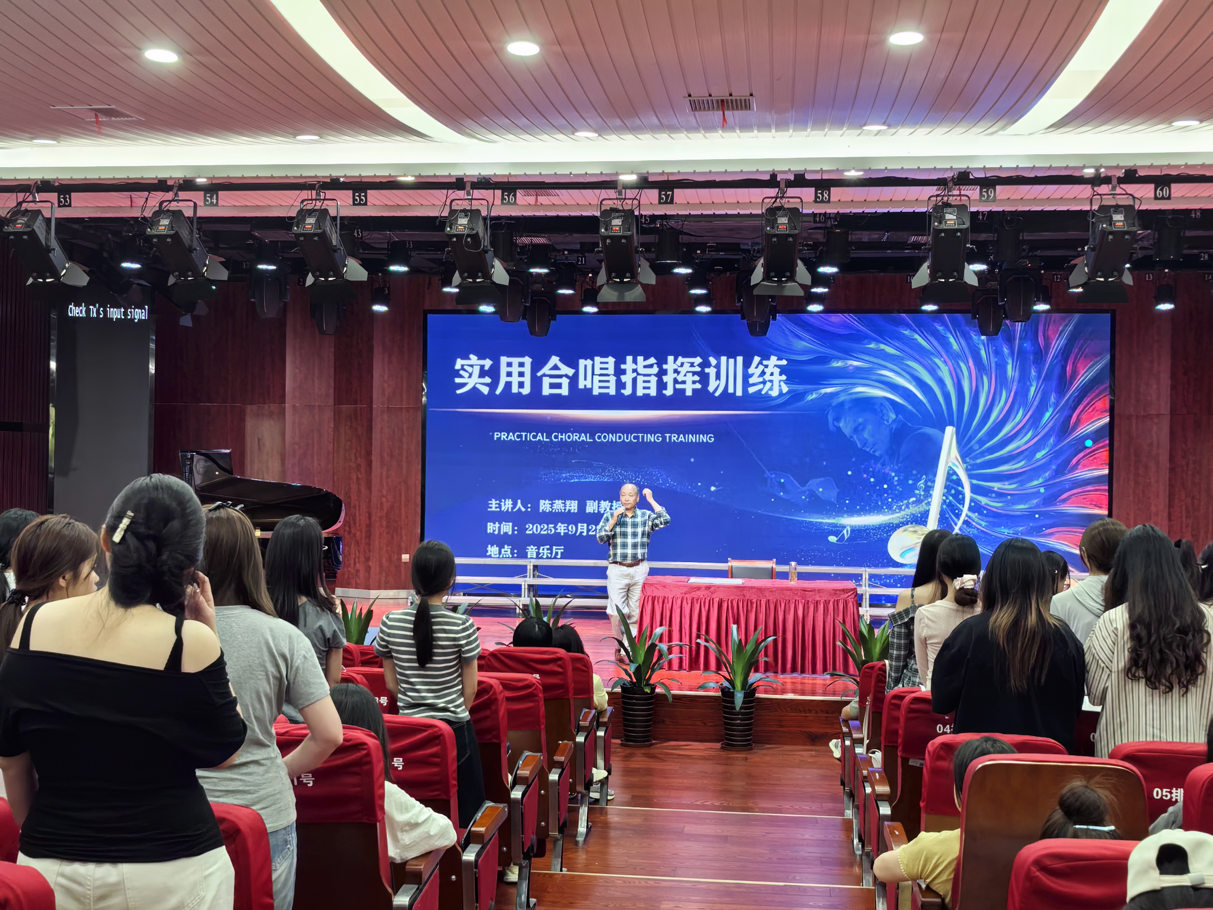 为提升我系师生的合唱与指挥专业技能,夯实合唱艺术实践基础,艺术与设计系于922日下午在校音乐厅成功举办“实用合唱与指挥训练”讲座。本次讲座特邀安庆师范大学陈燕翔副教授担任主讲,系领导、专业教师、音乐专业学生以及校老年大学合唱班学员共200多人参与。