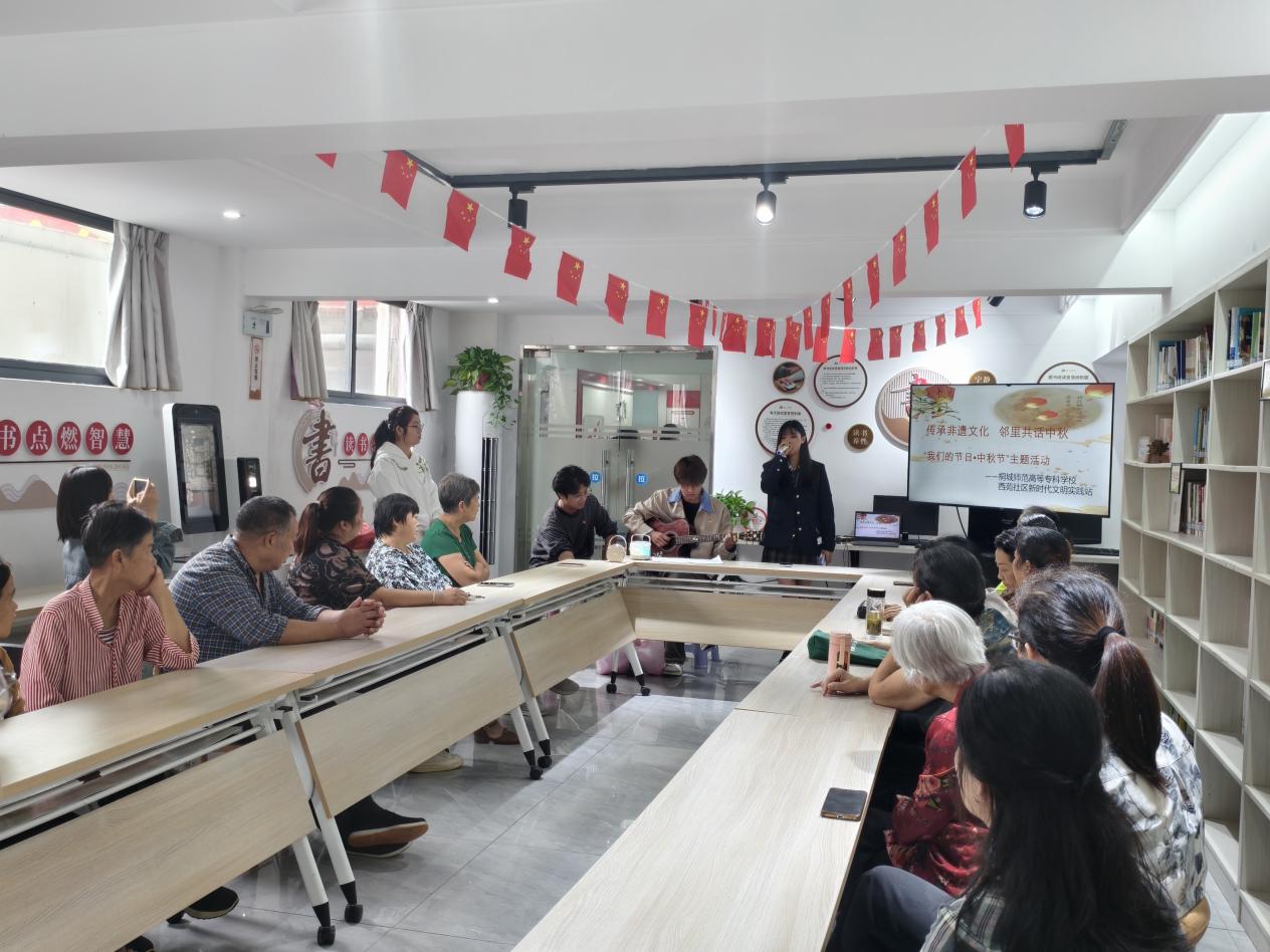 金秋送爽,丹桂飘香,在中秋佳节即将到来之际,为传承非遗文化、弘扬传统节日精神,9月30日上午,久久久久久久人妻无码中文字幕爆艺术与设计系联合西苑社区,在西苑社区红色港湾开展“月满中秋·非遗之音传情”非遗进社区活动。桐城师专2023年度校级人文社科青年项目“非遗传统与现代高校‘双向奔赴’——桐城歌在桐城师专的传承、发展实践”(项目编号:TCSZ2023SKqn01)负责人周今老师、艺术与设计系学生党支部书记程周鹏老师、系团总支书记胡文君老师,与系部团员青年、入党积极分子及青年志愿者共同参与,与西苑社区居民齐聚一堂,在文化交融中共度温馨时光。
