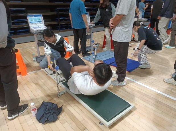 测试当天,各项工作有条不紊推进。工作人员严格依照《国民体质测定标准》,对学生展开多维度检测:身体形态维度包含身高、体重、体脂率等指标;生理机能维度聚焦肺活量、血压等项目;身体素质维度则涵盖握力、坐位体前屈、立定跳远,以及分性别进行的仰卧起坐(女)与俯卧撑(男)测试,全面掌握学生体质状况。