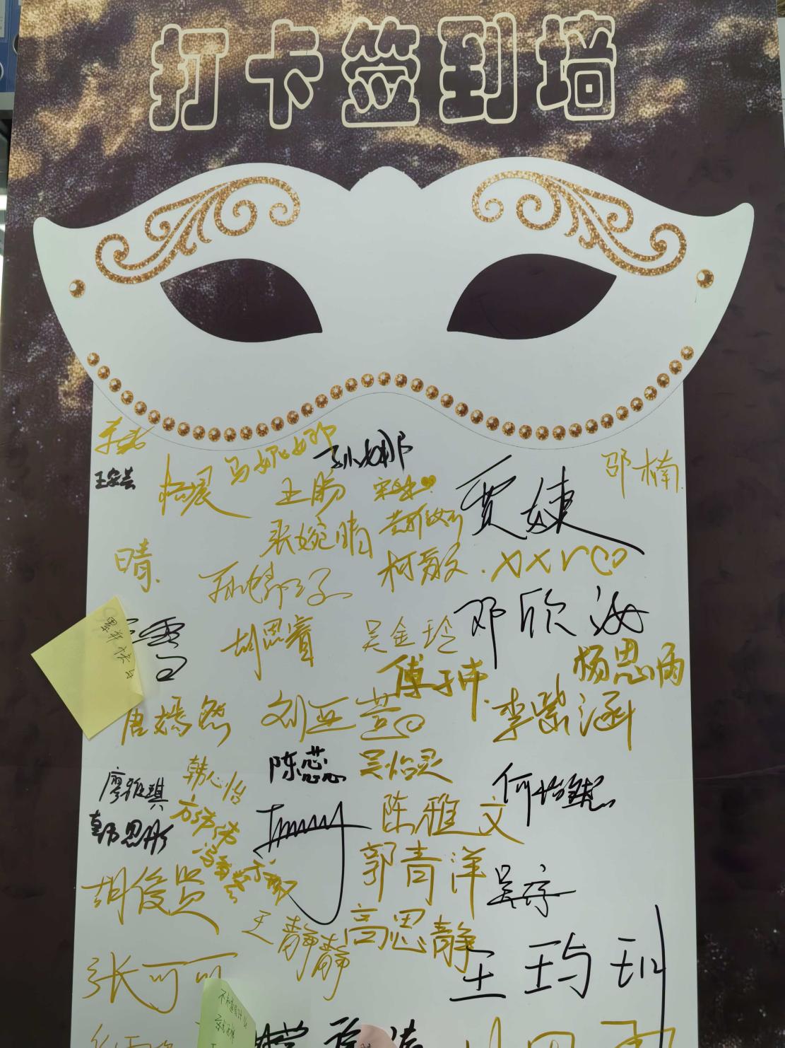 活动现场以暖调灯光与柔缓音乐营造出松弛氛围,入口处的“面具签到墙”成为首个亮点:学生们手持DIY面具在墙前留影,有的用亮片装饰出夸张纹路,有的以简约线条勾勒个性符号,面具既成了“匿名标识”,也成了自我表达的载体。