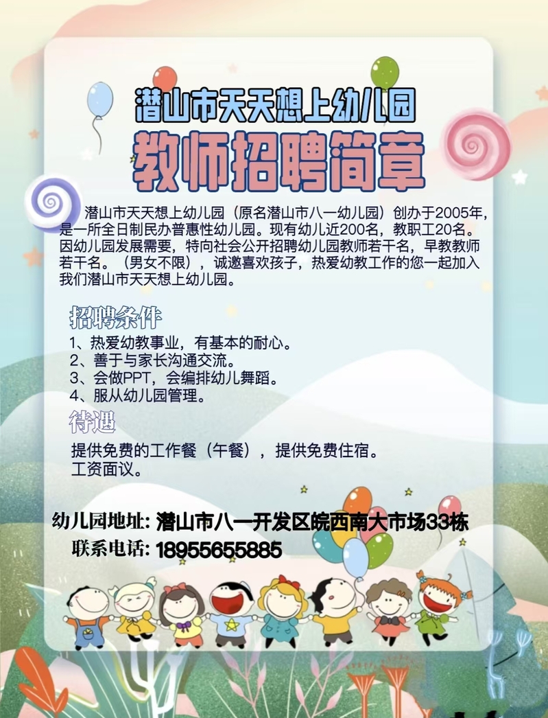 潜山市天天想上幼儿园教师招聘简章